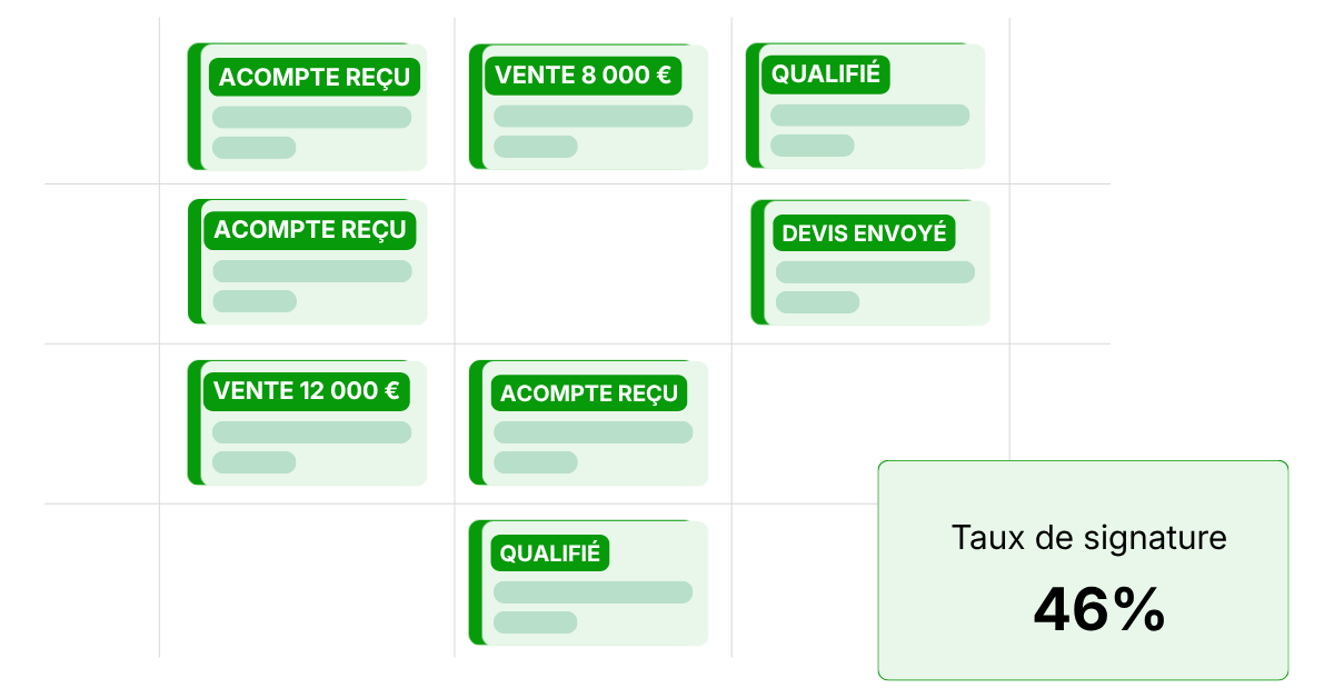 Chaque prospect est suivi et relancé jusqu’au bon moment. Les plus chauds prennent rendez-vous, les autres reviennent quand leur projet devient concret.
